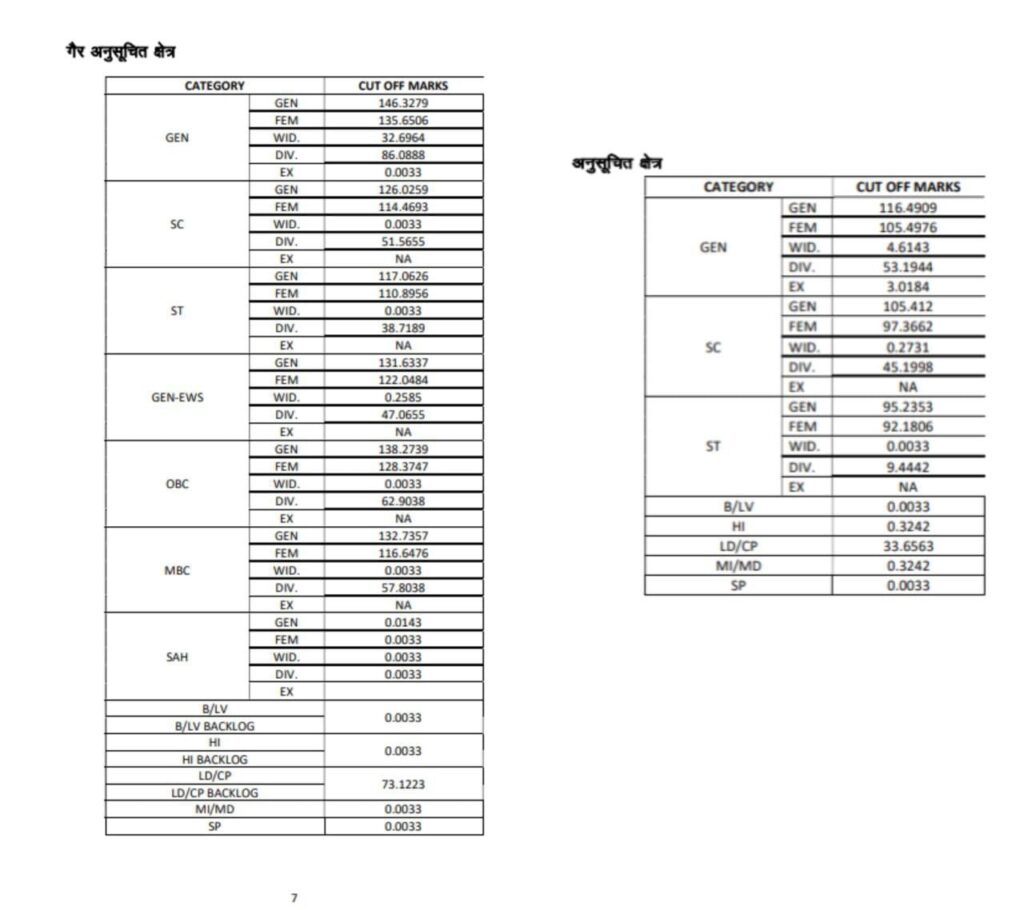 गैर अनुसूचित क्षेत्र (Non-Scheduled Area) – Cut Off Marks